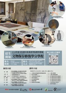 【活動報名】114年度文化部文化資產學院教學群組-文物保存修復學分學程報名開始!